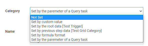 This allows you to use data saved from a Query Task. You will see a list of available parameters. Multiple values can be selected, but the first one with a value will be used. This is intended for when a process has multiple paths it could follow to get to the insert task.