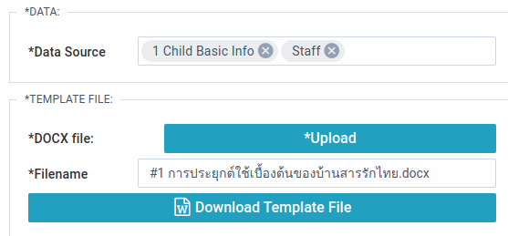 Data Source - Choose the data collections to load into the docx template. Unlike other widgets multiple data sources can be added.